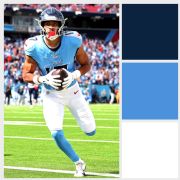 Tennessee TitansHelmet: Dark blue Jersey: Light blue Pants: White