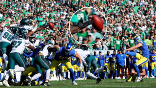 The result of breaking these rules is a 15-yard penalty.  The strategyThe Eagles blocked a pair of field goals and a punt and turned two of those into touchdowns all within the first month of the 2025 season. The most dramatic was in the waning moments of Week 3's intense matchup between the Eagles and the Los Angeles Rams, where the 6-foot-6, 336-pound Jordan Davis blocked a 44-yard Joshua Karty field goal attempt with three seconds remaining, scooped it up and rumbled 61 yards for the touchdown to secure a 33-26 win. It helps to have two standout defensive tackles in Davis and Jalen Carter wreaking havoc in the middle of the formation. But it's the prep work during the week -- and the buy-in from starters such as Carter and Davis -- that help make those moments happen. "[Assistant special teams coordinator Joe Pannunzio] is always talking to us during our special teams meeting, tells us when going through [a] field goal block who the fish is, what side is the best side to rush," said Carter, who had a field goal block of his own in that game. The "fish" Carter mentions is the weak link the Eagles look to exploit on the line. The Eagles' blocked punt came in Week 4 against the Bucs. Cameron Latu pierced through the middle of Tampa's formation to get his hand on the ball and Sydney Brown scooped it up and ran 35 yards for the touchdown to stake Philadelphia to an early 7-0 lead. Coach Nick Sirianni's reaction was yelling "I told you!" as he sprinted down the sideline during the play. "We go through our game plan early on in the week, and have an inkling when we could possibly get [a block]," Eagles special teams coach Michael Clay said. It's a team effort. Take field goal block prep: Pannunzio and senior defensive assistant/defensive line coach Clint Hurtt address the unit on Wednesday to give a primer. Then the group meets on Fridays to talk about which player gives them the best chance at attacking a kick. Clay credited pro scout Terrence Braxton, who does the advance work for the special teams coaches and lets them know which side of the line might be vulnerable. "I mean a lot of it goes into all the work that [special teams assistant] Tyler [Brown and] Joe puts into scouting," Clay said. "But at the end of the day, everything looks great on paper, everything looks great on my whiteboard until we could properly execute it like we did. ... It's all to the players."