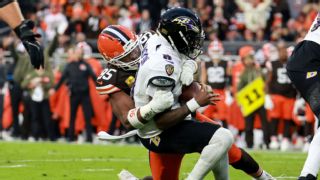 OWINGS MILLS, Md. -- In returning to practice Thursday, Baltimore Ravens quarterback Lamar Jackson was taken aback when told he already has been sacked the same number of times in seven starts this season as he was all of last year. "I got to talk to the offensive line about that," Jackson said while raising his right eyebrow. "I'm going to holler at my guys about that." This season, Jackson has been sacked 23 times, which is the eighth most in the league despite him having sat out three games because of a hamstring injury. Last season, Jackson was sacked 23 times in 17 starts, which ranked 26th among all quarterbacks.  Along with the sacks, the injuries also have increased. Jackson sat out Wednesday's practice because of an ankle injury before being a full participant Thursday. Last week, he was sidelined for one practice because of knee soreness before practicing the rest of the week. Jackson said he was feeling good physically but acknowledged that it probably would be his routine going forward to sit out Wednesday practices. "We'll see how it goes," Jackson said. "I got to see how [Coach John Harbaugh] feels about it." Since becoming the Ravens' starting quarterback midway through the 2018 season, Jackson has been hit 1,305 times -- which is 107 more than any other quarterback in that span. Jackson was asked if he has had to learn how to manage his body as he has aged. "I don't think I'm old at all right now," said Jackson, who turns 29 in January. "Not that old." Even though Baltimore (5-5) has won four straight games, the two-time NFL Most Valuable Player hasn't been at his best lately. In wins at Minnesota and Cleveland, Jackson completed 57.4% of his throws for an average of 184.5 yards. In Sunday's 23-16 win at the Browns, he threw no touchdown passes and two interceptions for a 47.6 passer rating, which is the second worst of his career. "If it just happens in the game, probably," Jackson said when asked if injuries have affected his play. "But if you were injured, took some time off and you were able to come back, I doubt it."