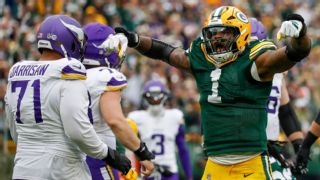 GREEN BAY, Wis. -- For some, a 10-sack season would be a milestone. Green Bay Packers defensive end Micah Parsons has another word for it. "The minimum," he said. With two sacks in Sunday's 23-6 win over the Minnesota Vikings, Parsons reached his "minimum" for the fifth straight season -- or every year he has been in the NFL. When Parsons dropped J.J. McCarthy for the second time in the third quarter, he became just the second player since sacks became an official stat in 1982 to post double-digit sacks season in each of his first five NFL seasons. Only Reggie White, with nine straight to start a career, has more. Parsons broke out of a tie with Hall of Famers Dwight Freeney and Derrick Thomas, who began their careers with four straight 10-plus sack seasons. "I wouldn't say it's like a feat where it's very easy or anything like that," Parsons said. "But you know, it's a standard of play." When Parsons was with the Dallas Cowboys for the first four seasons of his career, he and receiver CeeDee Lamb used to talk about minimum statistical markers for the top players at their respective positions. "Me and CeeDee Lamb used to say 1,000 yards is like the minimum," Parsons said of receiving yards. "So I feel like 10 sacks for the standard of player you are, that should be the minimum you should get. For me, mine was just always 10 sacks. I'm beating him right now. He was injured, though. I dealt with the same thing, so he has no excuse because we had the same high ankle [sprain], I'm still rooting for him to see what he does." Parsons, who was traded to Green Bay in August for a pair of first-round picks plus Kenny Clark and then given a four-year, $186 million contract extension, became the first Packers player with a double-digit sack season since Za'Darius Smith with 12.5 in 2020.  Parsons, who still has six more games to add to his total and perhaps top his career-best season of 14 sacks in 2023, said he felt like he was finally freed up to rush more often because the Packers played from ahead for most of the game thanks in part to backup running back Emanuel Wilson's 107-yard, two-touchdown game in place of the injured Josh Jacobs (knee). "When I get a chance, I win," Parsons said. "I affect the quarterback. I do what I do, but it's about just getting to the opportunities." The Packers (7-3-1) sacked McCarthy five times and came up with their first three-turnover game of the season. "I think once we got a lead and just as effective as our pass rush [was], this is the first time in a while where I thought our guys could pin their ears back and just go," Packers coach Matt LaFleur said. "It just goes to show you the importance of getting a lead where you put them into some situations where they feel like they have to throw the football."