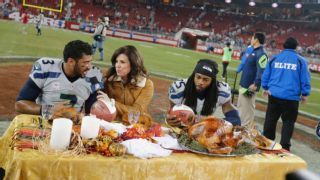 Week 12 ranking: 7 Thanksgiving game memory: 19-3 win over the 49ers in 2014 Thanksgiving dinner might have never tasted better for the Seahawks and their fans than on this night in Santa Clara. At the height of their NFC West rivalry, Seattle held San Francisco to a field goal, prompting 49ers owner Jed York to tweet an apology to his team's fans for the "unacceptable" performance. Seattle cornerback Richard Sherman picked off nemesis quarterback Colin Kaepernick twice and beat his college coach, Jim Harbaugh, whom he'd clashed with at Stanford. If that wasn't satisfying enough for the star cornerback, he and quarterback Russell Wilson then chomped on turkey legs at midfield of the brand-new Levi's Stadium. -- Brady Henderson