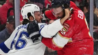 SUNRISE, Fla. -- On Monday, the NHL suspended Tampa Bay forward Scott Sabourin four games and defenseman J.J. Moser for two games for their actions in the Lightning's preseason finale against the Florida Panthers on Saturday night. Additionally, the Lightning organization was fined $100,000 and coach Jon Cooper was fined $25,000, the NHL said without further explanation. On Tuesday, however, Gary Bettman was asked about the league's position on the Lightning's actions. Speaking during the season opener between the Panthers and the Chicago Blackhawks, he expressed his displeasure. "I think we made our position clear in terms of our response," Bettman said. "That's not what the game is all about." The Lightning called up six players from their AHL affiliate in Syracuse for the game; those six combined for 77 penalty minutes and five of the six drew either a match penalty, misconduct or game misconduct during the matchup. "We didn't think what happened was appropriate for a variety of reasons," Bettman said. The NHL rulings, handed down Monday, means Sabourin will forfeit $16,145.84 -- or roughly $850 for every second that he played in Saturday's penalty-filled debacle. Moser will lose $35,156.26. It's unclear when Sabourin will serve the suspension since the Lightning sent him back to Syracuse of the American Hockey League on Monday. Sabourin played in only one NHL game last season. Sabourin -- who was on the ice for only 19 seconds Saturday -- was given a match penalty for going after Florida defenseman Aaron Ekblad just 2:17 into the game. That hit set the tone for a matchup where officials called 65 penalties, issued 13 game misconducts and handed out 312 penalty minutes. At one point, the Lightning had three skaters on their bench. "That was a first for me," Cooper said after that game. "I think we had more coaches than players on the bench at one point." Moser's suspension came for boarding Panthers forward Jesper Boqvist during that game. Moser was assessed a major penalty and game misconduct. There were so many penalties called that the on-ice crew evidently lost track of who had been kicked out. Florida's Niko Mikkola was credited with an assist midway through the third period on a goal by Boqvist that was disallowed about 15 minutes later because Mikkola was unaware he had been ejected earlier in the period -- and therefore ineligible to be playing.  "It got silly. It got stupid by the end of it," Florida forward Evan Rodrigues said that night. "It wasn't really hockey out there." Sabourin was one of six players called up Friday by Tampa Bay for Saturday's game. Those moves came one day after the Lightning and Panthers had another preseason game featuring 49 penalties and 186 penalty minutes. Ekblad left Saturday's game after the hit from Sabourin. He practiced Monday and played Tuesday when the two-time defending Stanley Cup champions opened their season at home with a 3-2 victory over the Blackhawks. The Associated Press contributed to this report.