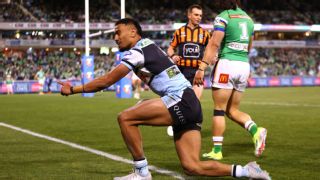 Canberra's NRL premiership bid has crumbled at the hands of Cronulla, who have claimed a 32-12 semi-final victory to send the Raiders crashing out of the finals in straight sets. The Raiders became the first minor premiers to suffer consecutive finals defeat since St George Illawarra in 2009 as Ricky Stuart's men froze on Saturday in the biggest game of their season. Cronulla weathered an early onslaught at GIO Stadium to book a place in next Friday's preliminary final against Melbourne but they will be without prop Tom Hazleton (concussion) while fellow forward Toby Rudolf could face sanction for two first-half high shots.  Led by halfback Nicho Hynes, the Sharks ruthlessly poked at the Raiders' sore points which were exposed in last week's 94th minute qualifying final loss to Brisbane. Canberra's flimsy right edge defence comprising halfback Jamal Fogarty, second-rower Zac Hosking and centre Matt Timoko missed 12 tackles combined as Hynes and halves partner Braydon Trindall ran riot. Their chemistry helped move the Sharks to within one game of a grand final while Canberra will be left wondering what might have been after a season that promised so much. Livewire five-eighth Ethan Strange was ruled out on gameday and with Simi Sasagi deputising as a No. 6, the Raiders lacked their usual spark. The home side struggled for fluency in attack and they only got on the board when Corey Horsburgh burst through a drained Sharks defence to touch down in the 22nd minute. Horsburgh's try gave the Sharks a chance to regroup and even accounting for Hazleton going off, Craig Fitzgibbon's men began showing up the Raiders' shortcomings. Halfback Fogarty came up too eagerly in defence and Hynes helped send Mulitalo over on the left wing with a 34th minute try. Cronulla smelt blood and added a second when centre KL Iro ran through some meek Timoko defence just before halftime. Iro was felled close to the Raiders tryline but on the next tackle Hynes waltzed through a disorganised defence to put his side 12-6 up at the break. Fogarty made amends for his early misread straight after halftime, sending a cutout pass to Seb Kris, who tipped on for Savelio Tamale to finish in the left corner. But that was about as good as it got for the home side as Billy Burns swatted through a feeble Fogarty tackle to move the Sharks back in front. Hynes, who finished the night with six goals from six attempts, kicked the conversion and then added a 25m penalty to open up an eight-point buffer on the hour mark. Canberra have made a habit of miracle comebacks but on Saturday their luck ran out. Iro scooped up a loose ball after a blunder from Jed Stuart to go over before a try to Teig Wilton put the finishing touches on an impressive Sharks win. Cronulla fans then broke into spontaneous renditions of Canberrra's signature Viking clap as the clock ticked down to fulltime.