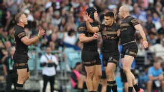Penrith's pursuit of a fifth straight premiership appears more alive than ever after they destroyed Canterbury 46-26 to book a preliminary final against Brisbane. Four months after sitting last on the ladder entering Round 13, Penrith are now one win from a grand final following a record-breaking 36-8 first half on Sunday. And while the Bulldogs added some respectability to the scoreline late on in front of 56,782 fans at Accor Stadium, they were still condemned to follow minor-premiers Canberra out of the finals in straight sets. The good news continued for Penrith after fulltime, with Liam Martin (ribs) and Casey McLean (hip) gaining a clean bill of health after finishing the game early. Already the first team to win four straight titles in almost 60 years, the Panthers must buck history as the only side to lift the trophy from outside the top four in the NRL-era. But based on Sunday's form, they look as big a threat as any remaining team, with the Broncos on notice ahead of next Sunday's clash at Suncorp Stadium and Melbourne and Cronulla on the other side of the draw. Nathan Cleary was at his brilliant best, kicking a 40-20, scoring a try and having a hand in almost everything Penrith did. Moses Leota, Lindsay Smith and Isaiah Papali'i were immense up front, while wingers Paul Alamoti and Brian To'o bagged five tries between them. Five-eighth Blaize Talagi also impressed on both sides of the ball, in a game where there was barely a Penrith player who didn't star. "It was pretty good. Very good," coach Ivan Cleary said when asked if that was his side's best 40 minutes. "After last week it felt like every team member was playing well, so that gives you a lot of confidence. "We connected well both sides of the ball in the first half."  Penrith's halftime lead was the largest in finals history, as the Bulldogs missed 42 tackles in the first half alone. It was a brutal end for a Bulldogs side who spent half of the regular season at the top of the table, before winning just five of their last 13 games. "We ran into a champion team that knows what it takes to win those big games," Bulldogs coach Cameron Ciraldo said. "That was a nightmare that first half, and very hard. "They were near perfect and we were off the mark in the first half. "(But) to come out the second half and attack the game the way they did made me really proud." Questions have been asked about Canterbury's decision to sign Lachlan Galvin midseason, but he was easily the Bulldogs' best on Sunday. The 20-year-old scored one try and set up another, as Canterbury at least exposed what may be Penrith's one weakness - their right-edge defence. Otherwise, Canterbury were well and truly beaten on the edges without injured captain Stephen Crichton. Up against the best defensive team of 2025, the Panthers threw the ball around with confidence and produced some of their best attacking football of the season. Paul Alamoti found space in the lead-up to each of Penrith's first three tries, as they repeatedly attacked the edge where Matt Burton was filling in at centre. One Cleary try came after Lindsay Smith and Papali'i both offloaded in the lead up, before the half passed to Alamoti and loomed up on the inside to score. Cleary had the ball on a string, running it down the short side on the last tackle in the lead-up to another try that ended with Brian To'o kicking for Papali'i. Mitch Kenny kicked out of dummy-half for another, while Blaize Talagi put a hit on Burton and helped lay on a try for To'o in another first-half effort. To'o turned provider after the break, intercepting a Bronson Xerri pass and going 50 metres before Alamoti crossed on the next play.