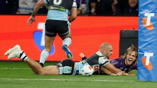 Melbourne have given themselves a shot at grand-final redemption, with the club's new big four booking a spot in the NRL decider with a 22-14 win over Cronulla. One year on from last year's grand-final defeat to Penrith, the Storm were electric in attack on Friday night against a resilient Sharks side who hung on until late. Melbourne will now face the winner of four-time defending premiers Penrith and Brisbane in Sunday's other preliminary final at Suncorp Stadium. The Storm have not won a premiership since Cameron Smith's retirement after the 2020 grand final, with the new era desperate to claim a title of their own. And on Friday night, they led the way. Cameron Munster and Ryan Papenhuyzen were dangerous with every touch, while Jahrome Hughes scored a try just 22 days after fracturing his forearm.  And with Cronulla doing their best to hang in there at 18-10 with five minutes to go, it was Grant who provided the knockout blow for the hosts. Running it on the last, the Melbourne hooker got into free space and spread the ball to the left before Xavier Coates crossed and broke Sharks hearts. Cronulla have defied their critics all season, and spent large parts of the match doing their best to repel a Storm side who always looked the better team. Playing with a heavily protected left arm and defending on the wing at different stages, Hughes had his fingerprints all over Melbourne's win. He copped a hit from Teig Wilton in the lead up to Melbourne's first try, and was on the receiving end of a high shot from Braydon Trindall in the second half. But he still had his way, getting the ball out wide after the Wilton hit and allowing Nick Meaney to send Will Warbrick over for the Storm's first. The halfback then scored Melbourne's next, when Stefano Utoikamanu continued his powerful end to the season by bumping off a defender and offloading to his halfback. Hughes was able to fend of Jesse Colquhoun with his left arm, before breaking into space and going 30 metres to score. And while Cronulla got back to 10-8, it was Munster and Papenhuyzen who landed the decisive blow before halftime when they caught Sharks fullback Will Kennedy up in the line. Munster kicked early, before a chasing Papenhuyzen got to the ball first, toed ahead and then beat Kennedy to the line to dive onto it and make it 16-8. Papenhuyzen also produced a vital try-saver on Briton Nikora midway through the second half, albeit while conceding a high-tackle penalty in the process. That got Cronulla back in the game at 16-10, but another penalty allowed Melbourne to go out to an eight-point lead before Coates' match-sealing try. Cronulla also had their moments, with Sione Katoa scoring a first-half double and Blayke Brailey again effective out of dummy-half. And while KL Iro got a last-minute consolation try, the Sharks were ultimately outgunned by a Storm side who look like they can threaten whoever they meet next Sunday.