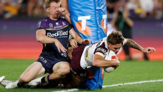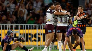 Reece Walsh has conjured up one of the greatest grand-final performances of all time to break Brisbane's premiership drought with a 26-22 win over Melbourne. In a decider for the ages at Accor Stadium, the Broncos came from 22-12 down at halftime to stun the Storm and claim their first premiership since 2006. Brisbane completed the comeback without Adam Reynolds who limped off in the second half, before halves partner Ben Hunt also suffered a concussion with eight minutes left. Ezra Mam stepped up for the Broncos with a try assist and a big defensive play swinging the match, after a year where he has dominated headlines. But ultimately it was Walsh who was the hero, with his electric attack and never-say-die defence outdoing a superb first half from Melbourne's all-star big four.  The Brisbane star beat five men to score a superb first-half try, set up three others and produced three try-saving plays to take the Broncos to their seventh premiership. "Oh my God, what a bloody ride," Walsh said. "A lot of people wrote us off this year, the only people who believed was us. "It hasn't sunk in yet. I'm just so bloody happy for our boys. The culture from sitting in those bushes in an army camp, to riding the wave. Oh baby!" The fullback's outing was a fitting end to a finals series he has dominated, saving Brisbane against both Canberra and Penrith. But as good as Walsh's finish was in the 94-minute epic against the Raiders earlier this month, Sunday night was something special. With Brisbane trailing by 10 at the break, Walsh kept the Broncos in the match when he first scrambled to stop Tui Kamikamica getting a ball down. From the next set Mam stood up, sending Gehamat Shibasaki over on the left edge and breathing life back into the game.  Walsh then unleashed three minutes of attacking brilliance, with his quick hands first sending Deine Mariner over with a cut-out ball to make it a two-point game. Brisbane then had the lead with 23 minutes to play when Walsh got the ball, accelerated and threw another cut-out ball for Shibasaki to grab his second. And with Melbourne fighting to take back the lead, Walsh produced two more try-saving plays to keep the Broncos on top. The fullback first chased down opposite number Ryan Papenhuyzen when he broke from a scrum, before another last-line-of-defence tackle on the Storm No.1 in the dying minutes. Brisbane's efforts to hold on came after they capitulated in similar circumstances two years ago against Penrith, as well as back in 2015 at the death against North Queensland. But they were a different team on Sunday night, holding on until the siren and amid more drama with Melbourne lock Trent Loiero sin-binned late for a shoulder charge. Earlier, Walsh was the shining light for Brisbane in a first half dominated by Melbourne. The No.1 laid on the fastest grand-final try of the NRL era when he burst onto a ball in the fourth minute, bust through Jack Howarth and sent a cut-out ball Mariner's way. But the next 15 minutes were all Melbourne, as the Storm shot to a 16-6 lead off the back of Harry Grant, Cameron Munster, Jahrome Hughes and Papenhuyzen. The quartet all combined to send Nick Meaney over for Melbourne's first, before Hughes grubber-kicked for Eliesa Katoa to get their second. Katoa then turned provider for the Storm's next, with a long cut-out ball for winger Will Warbrick to score, before Walsh's superb six-pointer made it 16-12. But when Hughes stepped off his right twice to beat Brisbane's defence and score just before the break, Melbourne led 22-12 and appeared premiers in waiting. "We defended for too long at the back end of that game. We just gave them too much ball," Munster said. "It was a great game of footy ... But it's pretty disappointing."
