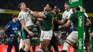 DUBLIN -- Well, where to start? The Springboks beat Ireland 23-14, their first win in Dublin since 2012 and underlined why they are by far the best side in the world. Usually that'd be enough. But there's much more to this match than that. This was an utterly bonkers Test. Sheer mayhem. Ireland were handed four cards in the first half; at one point Ireland were down to 12 men. Oh, and just before half time the Boks had a scrum on Ireland's five-metre line and Rassie Erasmus chose that moment to replace both props. Two parts of the Boks "bomb squad" obliterated their Irish opponents and a yellow and penalty try followed. There were two disallowed tries too in the first 40. Also there were moments of madness from players usually so composed. And above all that, the Boks underlined again how they are so far ahead of the rest at the moment. And then came the second half. Ireland have had the rub of the green against the Boks in recent times. They'd won four of their last five meetings, and there was quiet optimism Ireland had a statement performance up their sleeves.  The atmosphere in the Aviva Stadium was bubbling, smoke hung in the air, complete with an emotionally-stirring version of the Cranberries' anthem Zombie seconds before kick off. Two years ago, that song boomed from the stands in Paris after Ireland's monumental World Cup pool stage win over the Boks. Unpicking the defeat, Erasmus stood in the middle of the Stade de France, flicking a rugby ball around his hands, listening to the words of the song. It was a turning point; from there the Boks won the tournament, But the reprisal of the song ahead of tonight's game on this freezing November night clearly sought to stir up Parisian memories and propel Ireland and the fans forward. Right from the start you felt this game was going to be played on the extremity of emotions. As "Ireland's Call" rang out, the camera lingered on Caelan Doris. A thin smile spread across his face. Ireland were ready, in their minds at least, to put down a marker. But what followed in the first-half was just crackers. - Ireland 13-24 South Africa: Springboks end Dublin drought