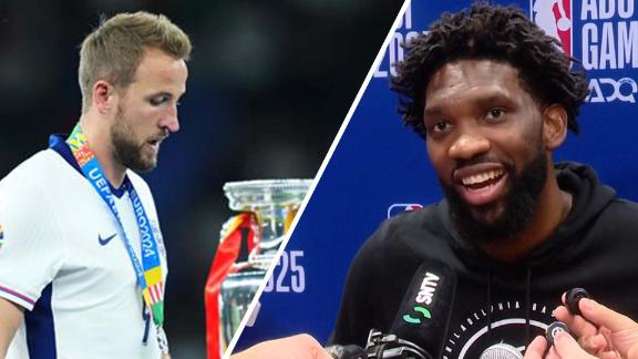 Joel Embiid predicts England will 'choke again' at the 2026 World Cup (0:54)