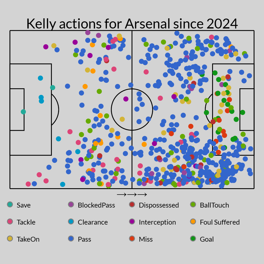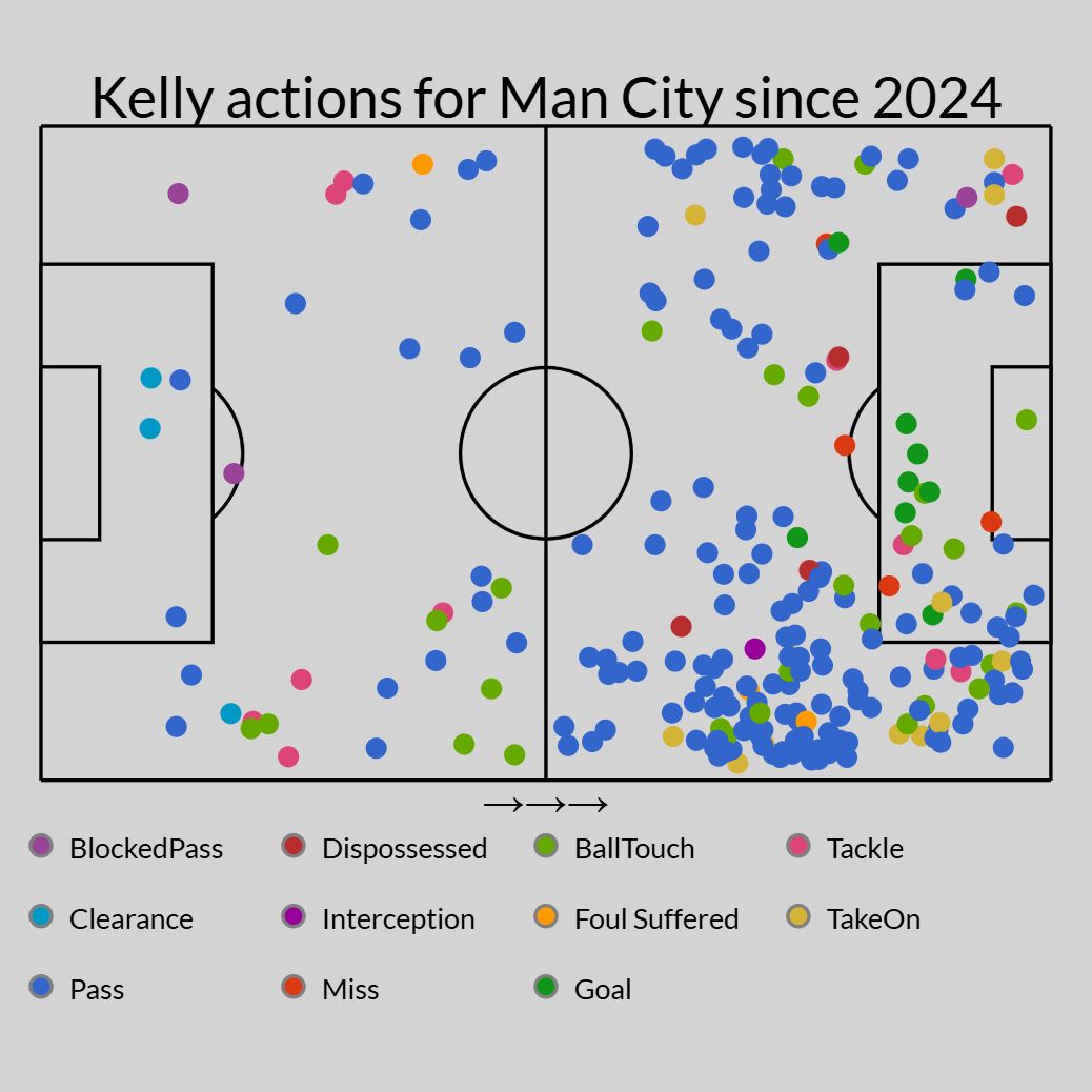 Across City's first nine WSL games of the season, stretching to the Christmas break, Kelly was an unused substitute three times and made only one start. In total, she played only 169 minutes across six matches before her loan to Arsenal at the end of January.