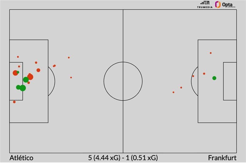 Typically, a blowout win like this is defined by torrid and unsustainable finishing. But Atletico engineered the win by creating fantastic chance after fantastic chance. They attempted 18 shots worth 4.4 xG while allowing a young -- and, on Tuesday, painfully naive -- opponent just six shots worth 0.5.