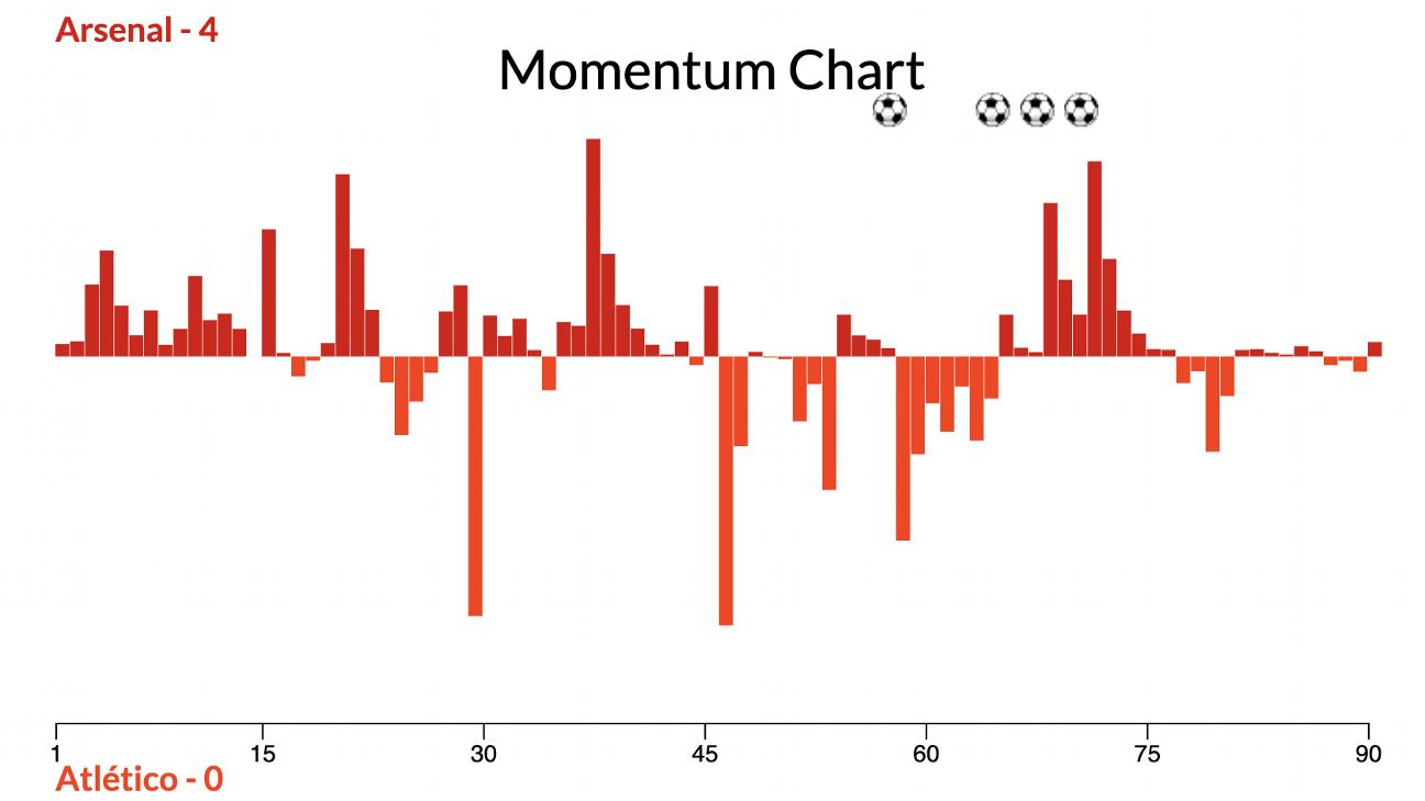 This one was decided by intensity and athleticism as much as anything. Arsenal defend better than the forever defense-minded Atletico, but Arsenal can defend the entire pitch, too -- they forced 20 high turnovers to Atleti's three, and their average possession start was 14.1 meters further up the pitch. Absolute domination. Oh, and they've now allowed just three goals in 12 matches in all competitions, including none in three Champions League matches.