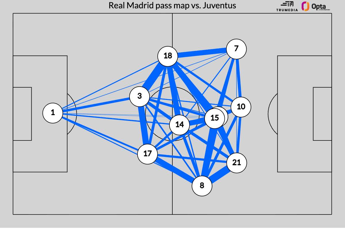 (The thicker the line, the more frequent the connection. Virtually all of Real Madrid's connections were frequent.)