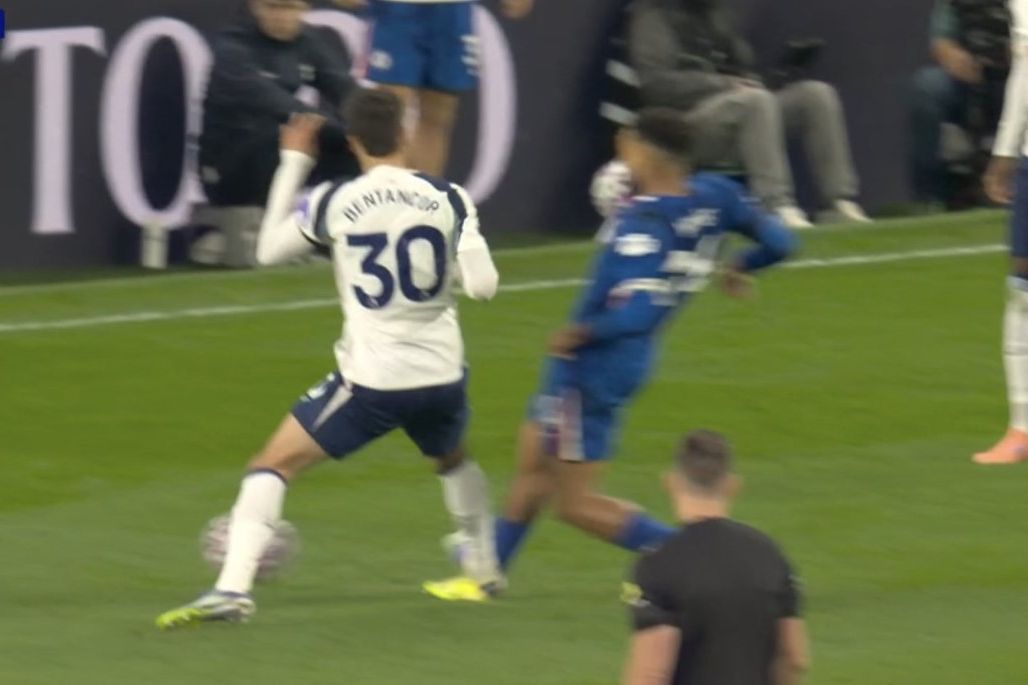 What happened: Chelsea right back James received a pass from teammate Wesley Fofana and neatly moved the ball forward with his first touch; Tottenham midfielder Bentancur challenged him and caught him late on his ankle with a degree of force. Referee Gillett, who had a good view of the challenge, awarded a free kick and, once he had managed the mass confrontation that ensued between both sets of players, cautioned Bentancur for the late and reckless challenge.