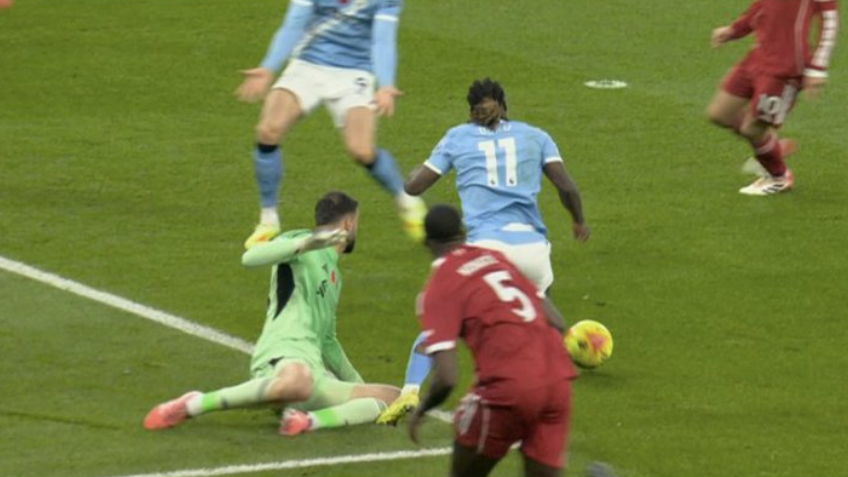 What happened: In the ninth minute, Doku appeared to be fouled by Mamardashvili as Liverpool's goalkeeper came flying out of his goal to challenge the City forward. Mamardashvili mistimed his challenge, sliding along the wet grass and into the left boot of Doku, who subsequently lost his balance and went to ground. Kavanagh did not award a penalty initially and allowed play to continue.