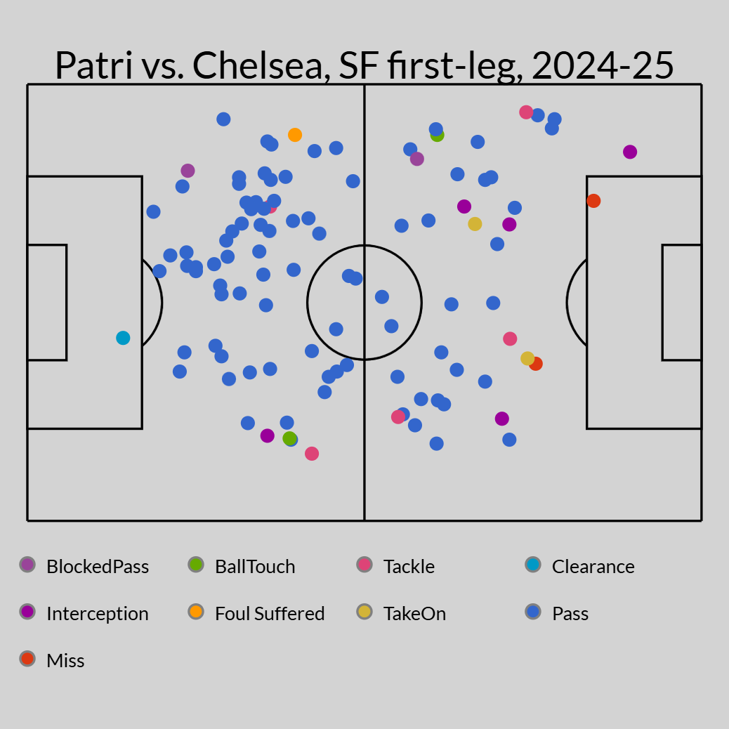 In the UWCL semifinal first leg against Chelsea last season, Patri neutralized all threats posed by the London side -- she finished the game with over 100 touches, winning eight of her 10 ground duels, recording five interceptions and making five tackles along the way.