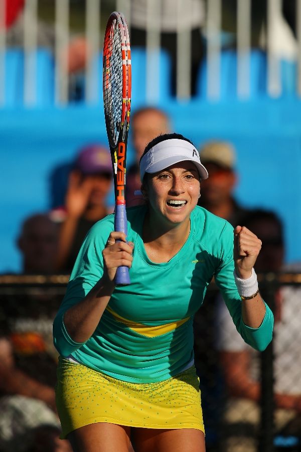 MELBOURNE, AUSTRALIA - JANUARY 19: Christina McHale of the United States celebrates winning in her first round match against Stephanie Foretz of France during day one of the 2015 Australian Open at Melbourne Park on January 19, 2015 in Melbourne, Australia. (Photo by Scott Barbour/Getty Images)