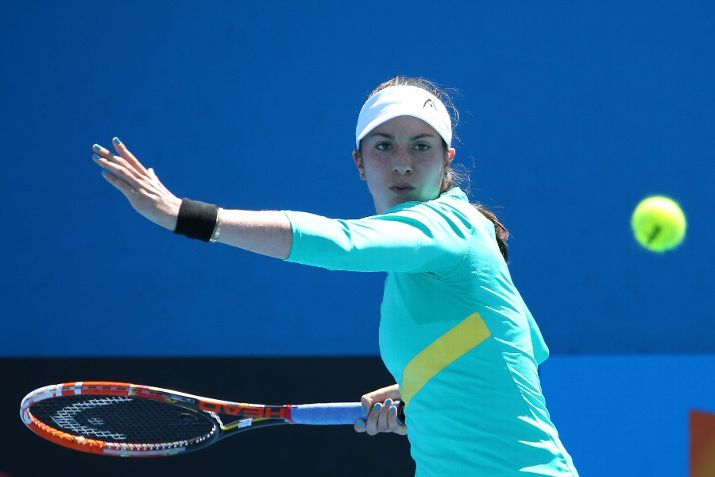 MELBOURNE, AUSTRALIA - JANUARY 21: Christina McHale of the United States plays a forehand in her second round match against Carina Witthoeft of Germany during day three of the 2015 Australian Open at Melbourne Park on January 21, 2015 in Melbourne, Australia. (Photo by Scott Barbour/Getty Images)