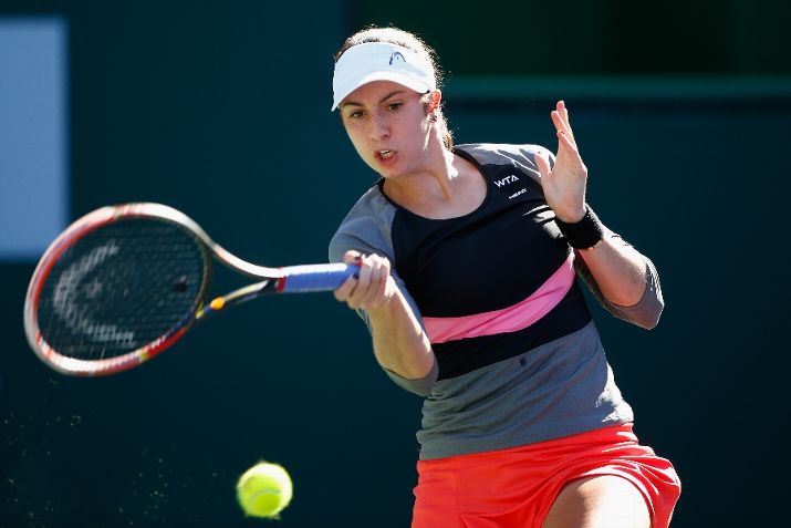 INDIAN WELLS, CA - MARCH 12: Christina McHale of USA in action against Petra Cetkovska of Czech Republic during day four of the BNP Paribas Open tennis at the Indian Wells Tennis Garden on March 12, 2015 in Indian Wells, California. (Photo by Julian Finney/Getty Images)