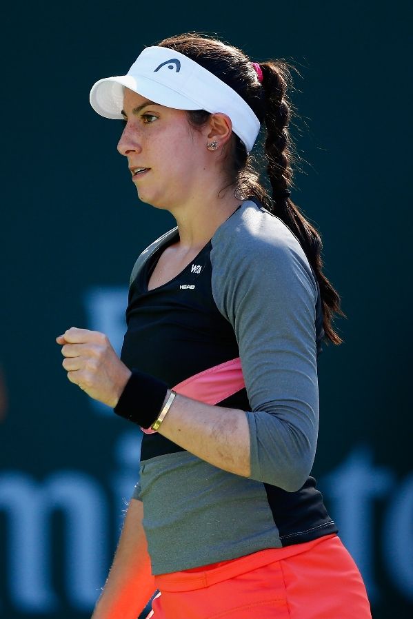 INDIAN WELLS, CA - MARCH 12: Christina McHale of USA celebrates in her match against Petra Cetkovska of Czech Republic during day four of the BNP Paribas Open tennis at the Indian Wells Tennis Garden on March 12, 2015 in Indian Wells, California. (Photo by Julian Finney/Getty Images)