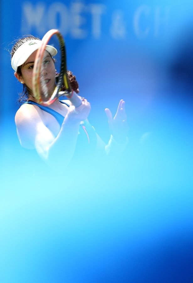 BIRMINGHAM, ENGLAND - JUNE 15: Christina McHale of USA in action against Alize Cornet of France on day one of the Aegon Classic at Edgbaston Priory Club on June 15, 2015 in Birmingham, England. (Photo by Jan Kruger/Getty Images for LTA)