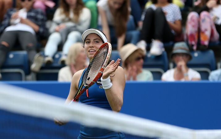 • BIRMINGHAM, ENGLAND - JUNE 15: Christina McHale of USA celebrates match point against Alize Cornet of France on day one of the Aegon Classic at Edgbaston Priory Club on June 15, 2015 in Birmingham, England. (Photo by Jan Kruger/Getty Images for LTA)