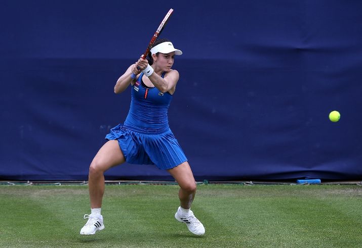 BIRMINGHAM, ENGLAND - JUNE 17: Christina McHale of the United States in action against Misaki Doi of Japan on day three of the Aegon Classic at Edgbaston Priory Club on June 17, 2015 in Birmingham, England. (Photo by Jan Kruger/Getty Images for LTA)