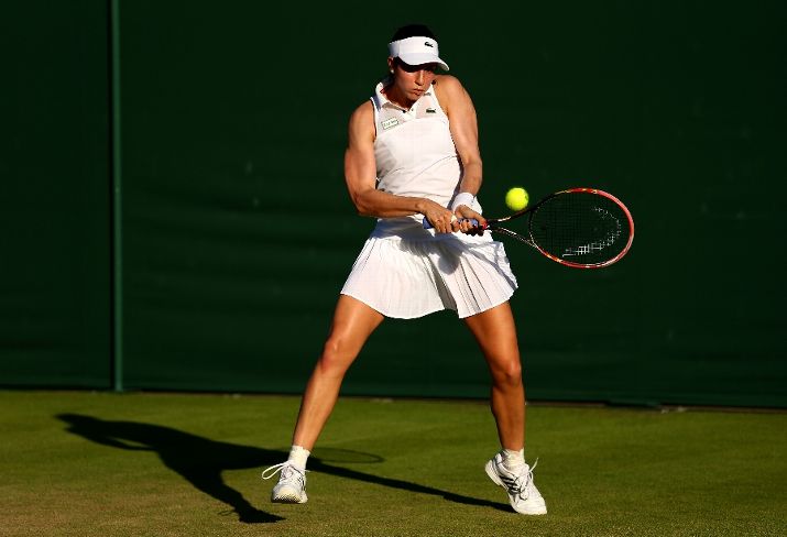 LONDON, ENGLAND - JUNE 30: Christina McHale of the United States in action in her Ladies Singles first round match against Johanna Larsson of Sweden during day two of the Wimbledon Lawn Tennis Championships at the All England Lawn Tennis and Croquet Club on June 30, 2015 in London, England. (Photo by Clive Brunskill/Getty Images)