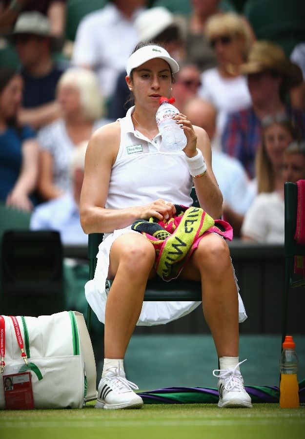 LONDON, ENGLAND - JULY 02: Christina McHale of USA sits court side in her match against Sabine Lisicki of Germany in her Women's Singles Second Round match during day four of the Wimbledon Lawn Tennis Championships at the All England Lawn Tennis and Croquet Club on July 2, 2015 in London, England. (Photo by Ian Walton/Getty Images)