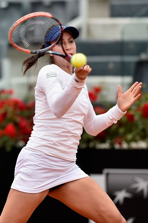ROME, ITALY - MAY 12: Christina Mchale of the United States plays a backhand in her match against Serena Williams of the United States on Day Five of The Internazionali BNL d'Italia on May 12, 2016 in Rome, Italy. (Photo by Dennis Grombkowski/Getty Images)