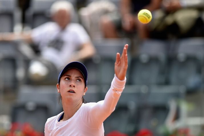 ROME, ITALY - MAY 12: Christina Mchale of the United States serves in her match against Serena Williams of the United States on Day Five of The Internazionali BNL d'Italia on May 12, 2016 in Rome, Italy. (Photo by Dennis Grombkowski/Getty Images)
