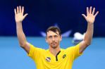 BRISBANE, AUSTRALIA - JANUARY 05: John Millman of Australia celebrates victory in his match against Felix Auger-Aliassime of Canada during day three of the 2020 ATP Cup Group Stage at Pat Rafter Arena on January 05, 2020 in Brisbane, Australia. (Photo by Bradley Kanaris/Getty Images)