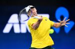 BRISBANE, AUSTRALIA - JANUARY 07: John Millman of Australia plays a forehand in his match against Michail Pervolarakis of Greece during day five of the ATP Cup Group Stage at Pat Rafter Arena on January 07, 2020 in Brisbane, Australia. (Photo by Bradley Kanaris/Getty Images)