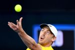 BRISBANE, AUSTRALIA - JANUARY 07: John Millman of Australia serves in his match against Michail Pervolarakis of Greece during day five of the ATP Cup Group Stage at Pat Rafter Arena on January 07, 2020 in Brisbane, Australia. (Photo by Bradley Kanaris/Getty Images)