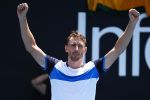 • MELBOURNE, AUSTRALIA - JANUARY 21: John Millman of Australia celebrates after winning match point during his Men's Singles first round match against Ugo Humbert of France on day two of the 2020 Australian Open at Melbourne Park on January 21, 2020 in Melbourne, Australia. (Photo by Quinn Rooney/Getty Images)