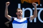 MELBOURNE, AUSTRALIA - JANUARY 21: John Millman of Australia celebrates after winning match point during his Men's Singles first round match against Ugo Humbert of France on day two of the 2020 Australian Open at Melbourne Park on January 21, 2020 in Melbourne, Australia. (Photo by Quinn Rooney/Getty Images)