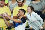 MELBOURNE, AUSTRALIA - JANUARY 22: John Millman of Australia takes selfies with the fans after winning his Men's Singles second round match against Hubert Hurkacz of Poland on day three of the 2020 Australian Open at Melbourne Park on January 22, 2020 in Melbourne, Australia. (Photo by Mark Kolbe/Getty Images)