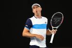 MELBOURNE, AUSTRALIA - JANUARY 24: John Millman of Australia reacts during his Men's Singles third round match against Roger Federer of Switzerland on day five of the 2020 Australian Open at Melbourne Park on January 24, 2020 in Melbourne, Australia. (Photo by Cameron Spencer/Getty Images)