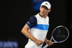 MELBOURNE, AUSTRALIA - JANUARY 24: John Millman of Australia celebrates after winning a point during his Men's Singles third round match against Roger Federer of Switzerland on day five of the 2020 Australian Open at Melbourne Park on January 24, 2020 in Melbourne, Australia. (Photo by Cameron Spencer/Getty Images)