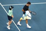 MELBOURNE, AUSTRALIA - JANUARY 24: Roger Federer of Switzerland takes a towel from a ballkid during his Men's Singles third round match against John Millman of Australia on day five of the 2020 Australian Open at Melbourne Park on January 24, 2020 in Melbourne, Australia. (Photo by Hannah Peters/Getty Images)