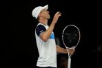 MELBOURNE, AUSTRALIA - JANUARY 24: John Millman of Australia shows his frustration during his five set defeat in his Men's Singles third round match against Roger Federer of Switzerland on day five of the 2020 Australian Open at Melbourne Park on January 24, 2020 in Melbourne, Australia. (Photo by Clive Brunskill/Getty Images)