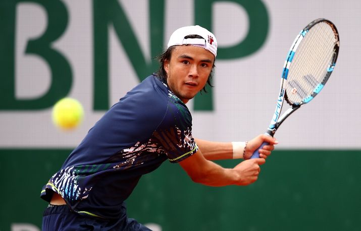 PARIS, FRANCE - MAY 23: Taro Daniel of Japan lines up a backhand during the Men's Singles first round match against Martin Klizan of Slovakia on day two of the 2016 French Open at Roland Garros on May 23, 2016 in Paris, France. (Photo by Clive Brunskill/Getty Images)