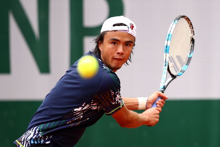 PARIS, FRANCE - MAY 23: Taro Daniel of Japan hits a backhand during the Men's Singles first round match against Martin Klizan of Slovakia on day two of the 2016 French Open at Roland Garros on May 23, 2016 in Paris, France. (Photo by Clive Brunskill/Getty Images)