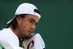 LONDON, ENGLAND - JULY 03: Taro Daniel of Japan looks on during a break in his Men's Singles first round match against Fabio Fognini of Italy on day two of the Wimbledon Lawn Tennis Championships at All England Lawn Tennis and Croquet Club on July 3, 2018 in London, England. (Photo by Matthew Lewis/Getty Images)
