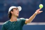 WINSTON-SALEM, NC - AUGUST 22: Taro Daniel of Japan serves to Sam Querrey during their match on day three of the Winston-Salem Open at Wake Forest University on August 22, 2018 in Winston-Salem, North Carolina. (Photo by Jared C. Tilton/Getty Images)