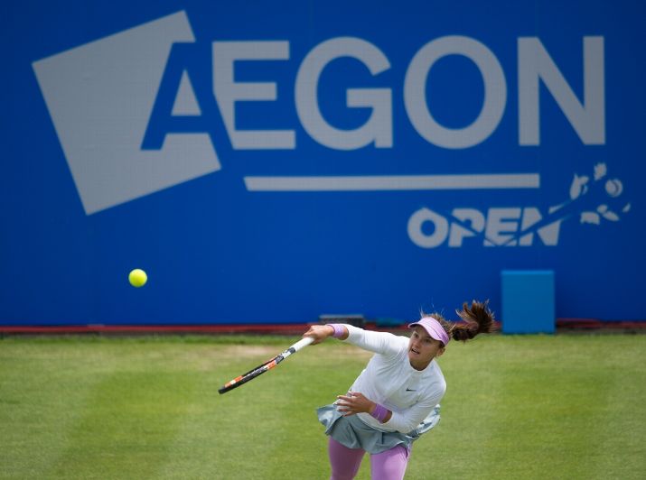 NOTTINGHAM, ENGLAND - JUNE 10: Lauren Davis of USA serves the ball during her match against Magda Linette of Poland on day three of the WTA Aegon Open Nottingham at Nottingham Tennis Centre on June 10, 2015 in Nottingham, England. (Photo by Jon Buckle/Getty Images for LTA)