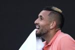 MELBOURNE, AUSTRALIA - JANUARY 27: Nick Kyrgios of Australia wipes his face with a towel during his Men's Singles fourth round match against Rafael Nadal of Spain on day eight of the 2020 Australian Open at Melbourne Park on January 27, 2020 in Melbourne, Australia. (Photo by Quinn Rooney/Getty Images)