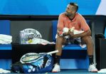 MELBOURNE, AUSTRALIA - JANUARY 27: Nick Kyrgios of Australia smiles as he sits down in between games during his Men's Singles fourth round match against Rafael Nadal of Spain on day eight of the 2020 Australian Open at Melbourne Park on January 27, 2020 in Melbourne, Australia. (Photo by Mark Kolbe/Getty Images)