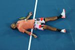 MELBOURNE, AUSTRALIA - JANUARY 27: Nick Kyrgios of Australia lays on the court after losing a point during his Men's Singles fourth round match against Rafael Nadal of Spain on day eight of the 2020 Australian Open at Melbourne Park on January 27, 2020 in Melbourne, Australia. (Photo by Cameron Spencer/Getty Images) *** BESTPIX ***