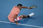 MELBOURNE, AUSTRALIA - JANUARY 27: Nick Kyrgios of Australia gets up off the court after losing a point during his Men's Singles fourth round match against Rafael Nadal of Spain on day eight of the 2020 Australian Open at Melbourne Park on January 27, 2020 in Melbourne, Australia. (Photo by Hannah Peters/Getty Images)