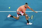 MELBOURNE, AUSTRALIA - JANUARY 27: Nick Kyrgios of Australia plays a backhand in his Men's Singles fourth round match against Rafael Nadal of Spain on day eight of the 2020 Australian Open at Melbourne Park on January 27, 2020 in Melbourne, Australia. (Photo by Cameron Spencer/Getty Images)
